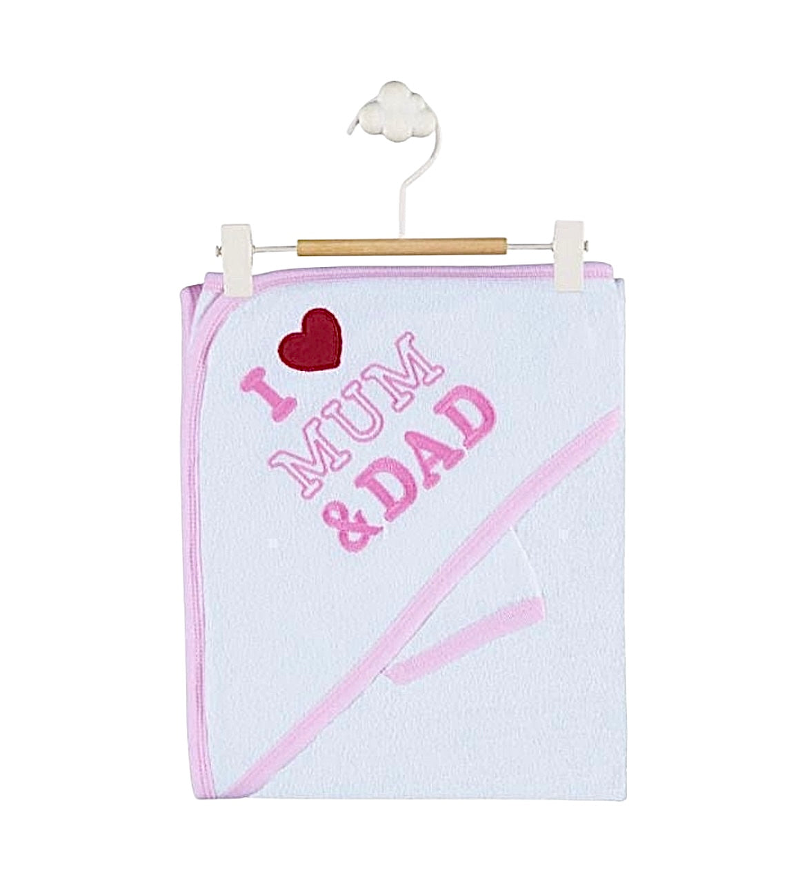 Cette cape de bain I love Mum & Dad Rose est une idée de cadeau de naissance originale et utile :