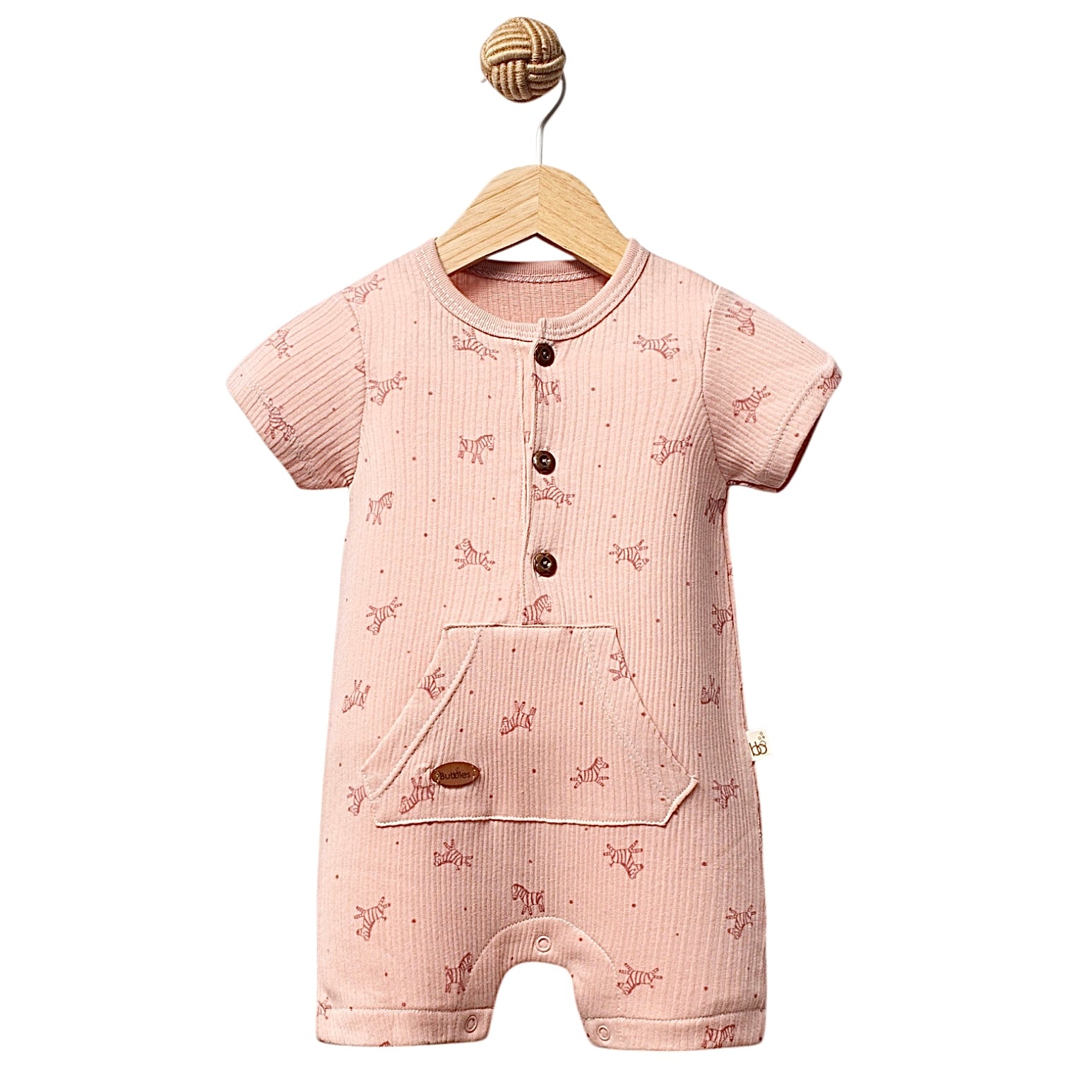 Cette barboteuse se distingue par ses petits motifs zébrés subtils et sa jolie couleur douce, parfaite pour bébé fille comme bébé garçon. Sa coupe moderne avec poche frontale et boutons décoratifs ajoute une touche stylée et pratique.