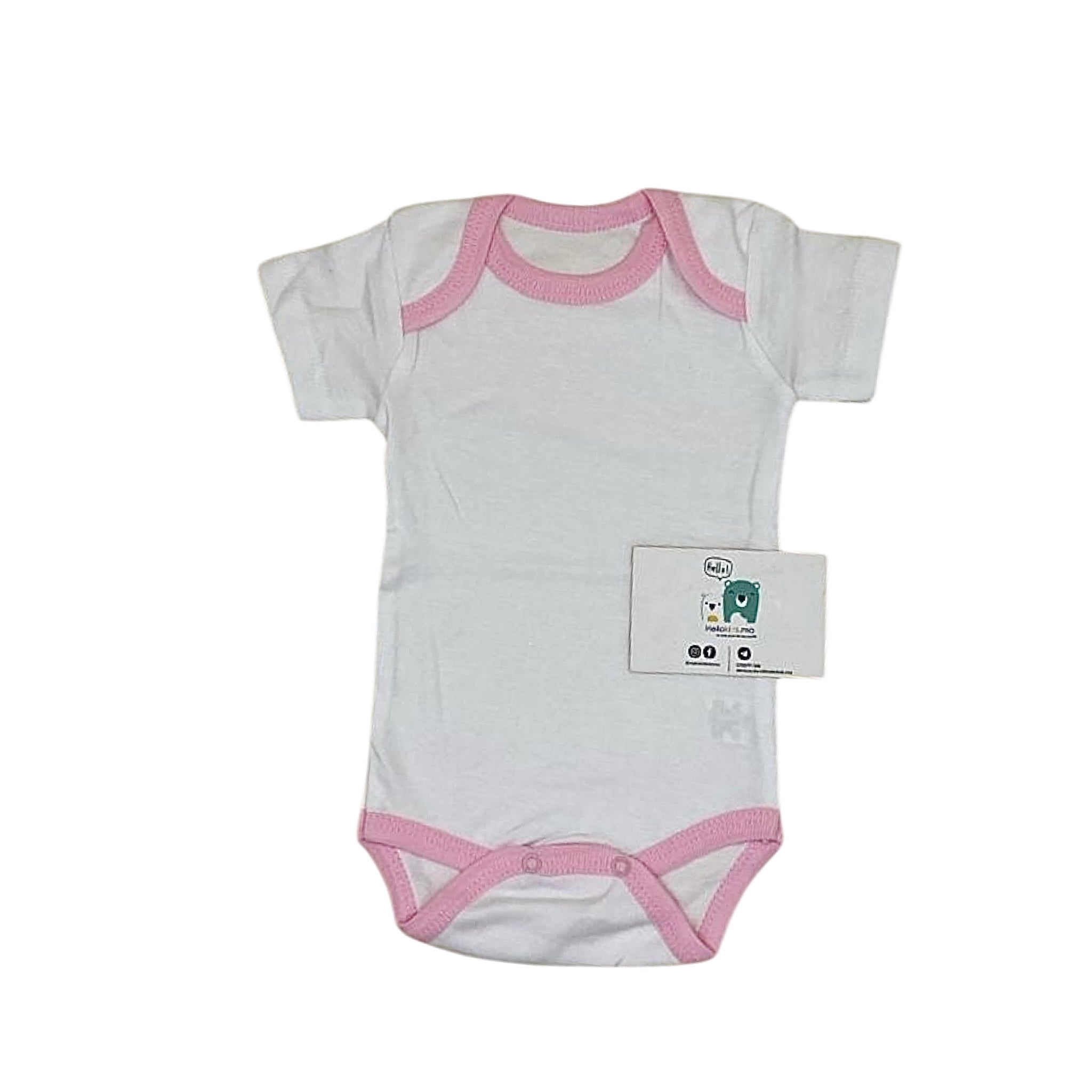 Body bébé fille demi-manche – Blanc avec col et attaches roses – 100% coton