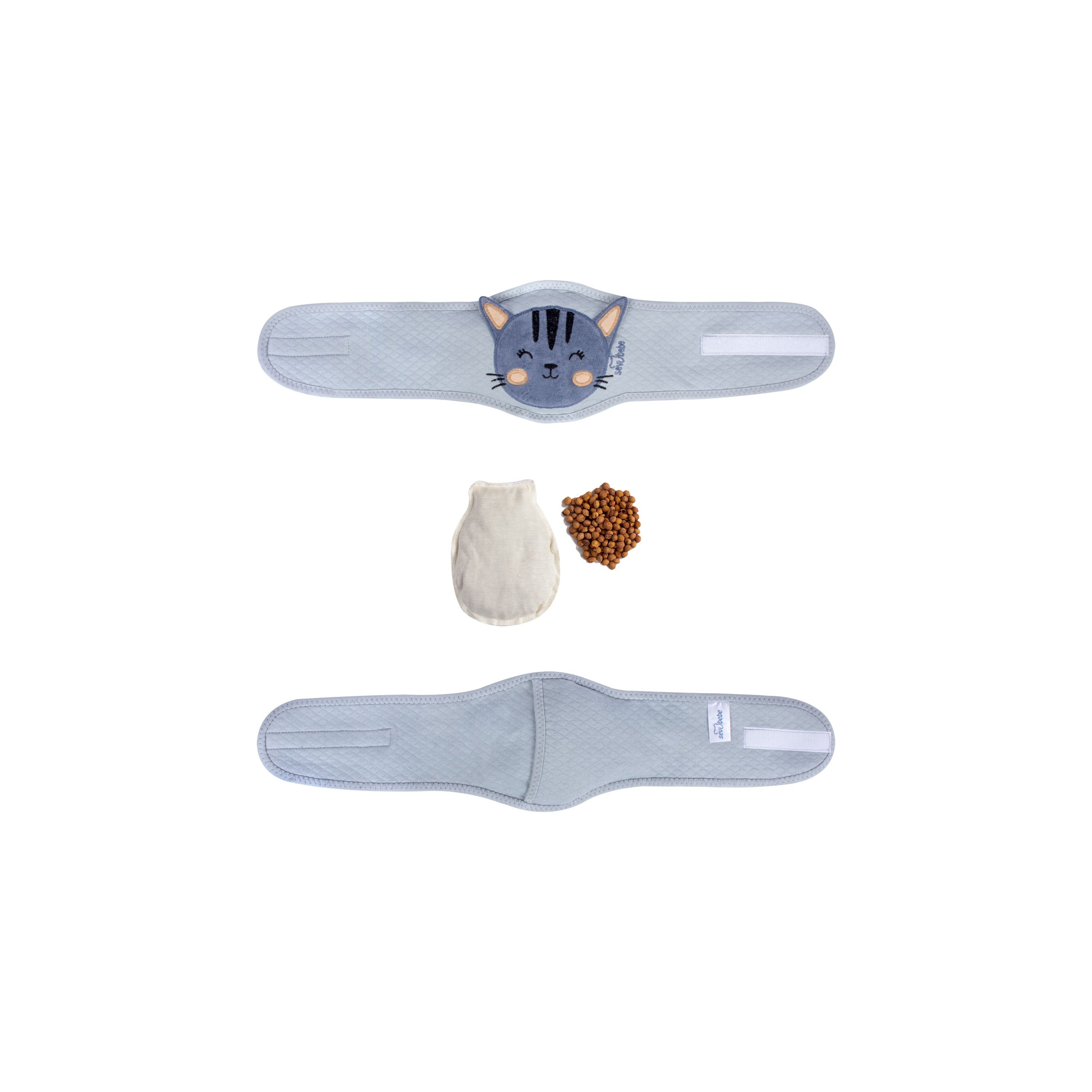 Avec sa teinte gris douce et son motif chaton souriant, cette ceinture apporte confort et tendresse à chaque utilisation.