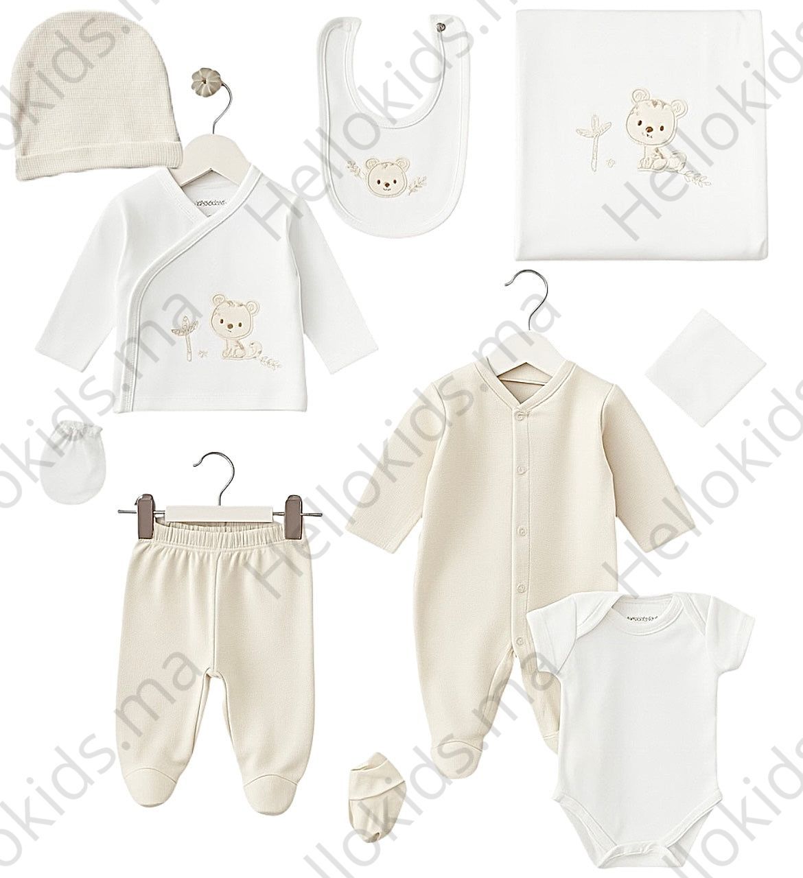 Offrez à bébé un départ tout en douceur avec ce magnifique coffret naissance 10 piÚces, conçu pour envelopper les tout-petits de confort et de tendresse.