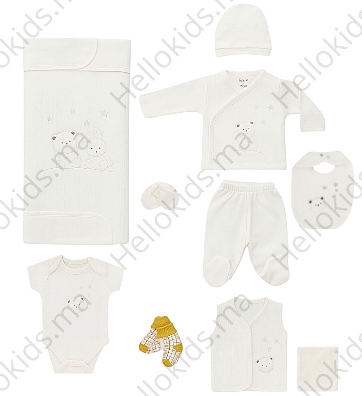 Coffret naissance 10 pcs Hi buddy - 100% Coton