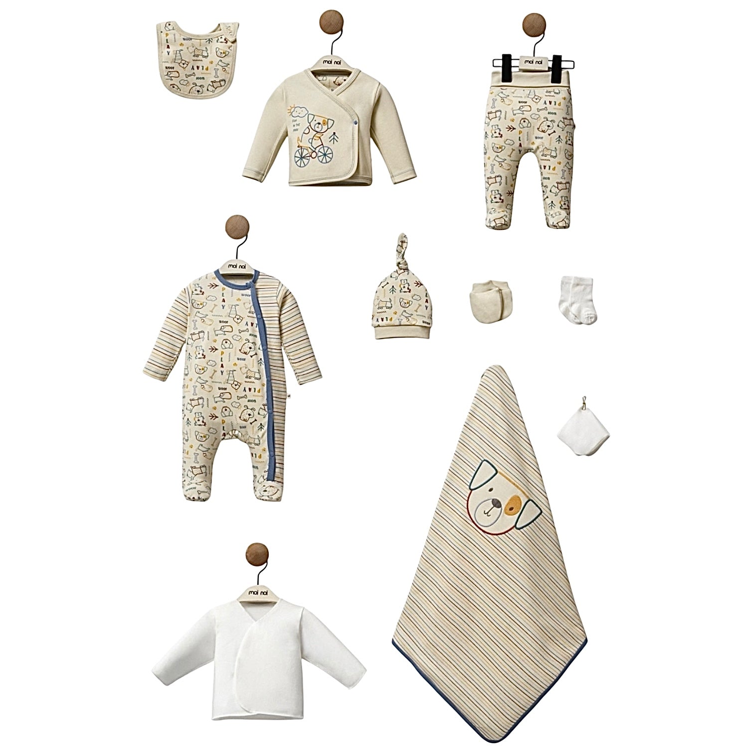Le thème Little Dog apporte une touche joyeuse et réconfortante au trousseau de bébé.