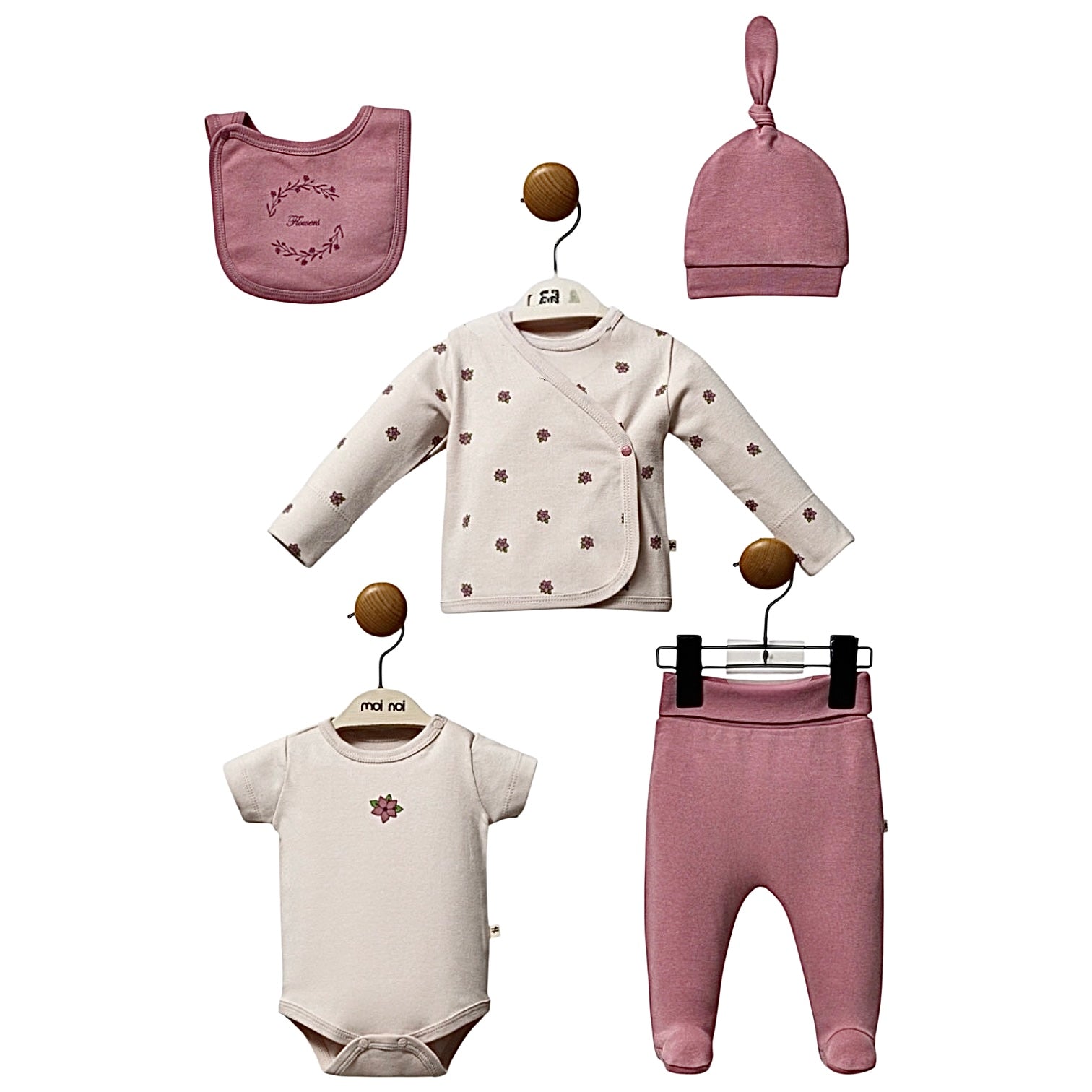 Disponible sur Hellokids.ma, le coffret naissance Yaprak Girly 5 pièces est le choix parfait pour offrir à bébé douceur, confort et élégance dès ses premiers instants.