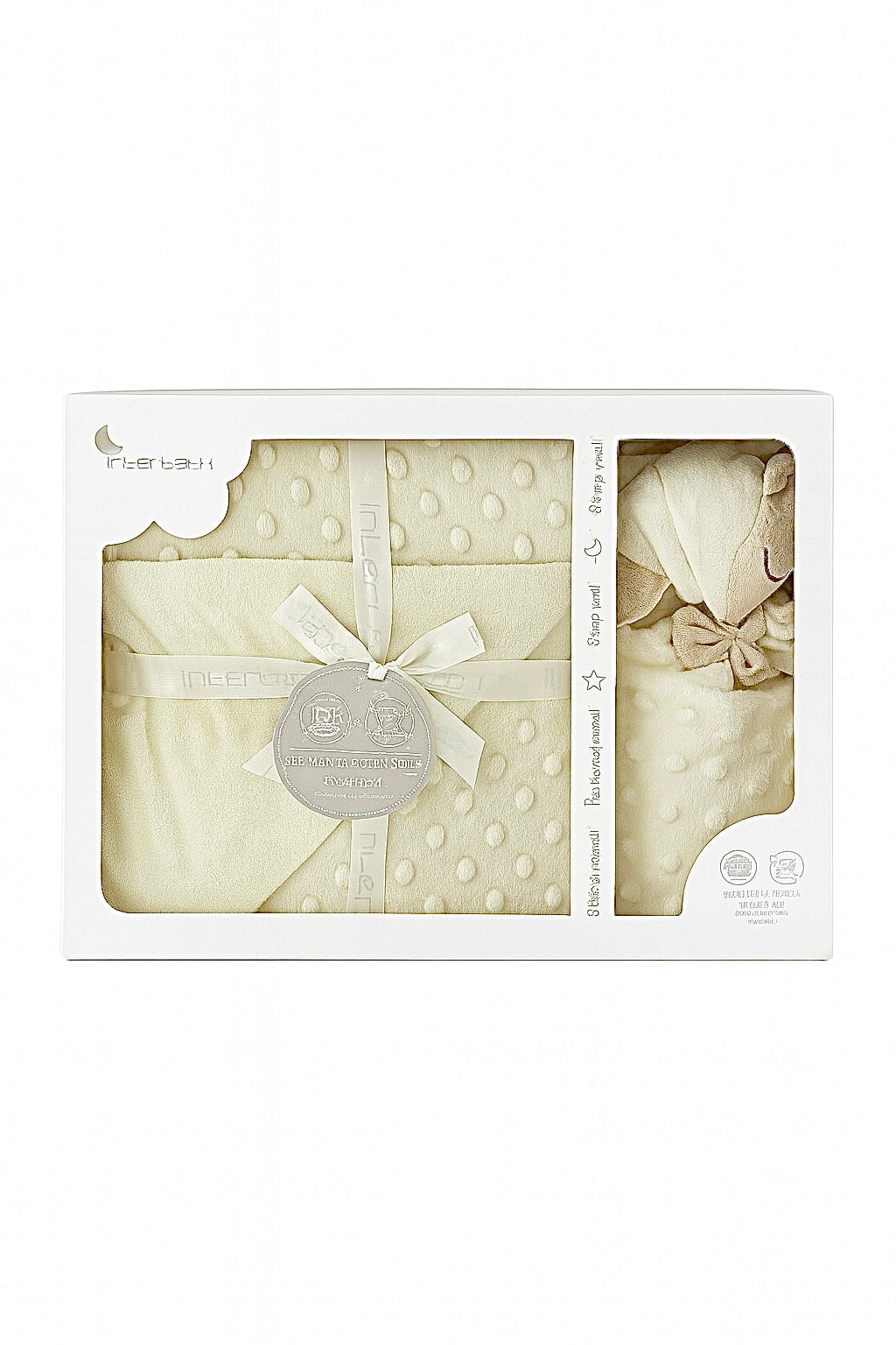 Coffret Couverture en velours 80x110 cm+ Doudou interbaby - Crème
