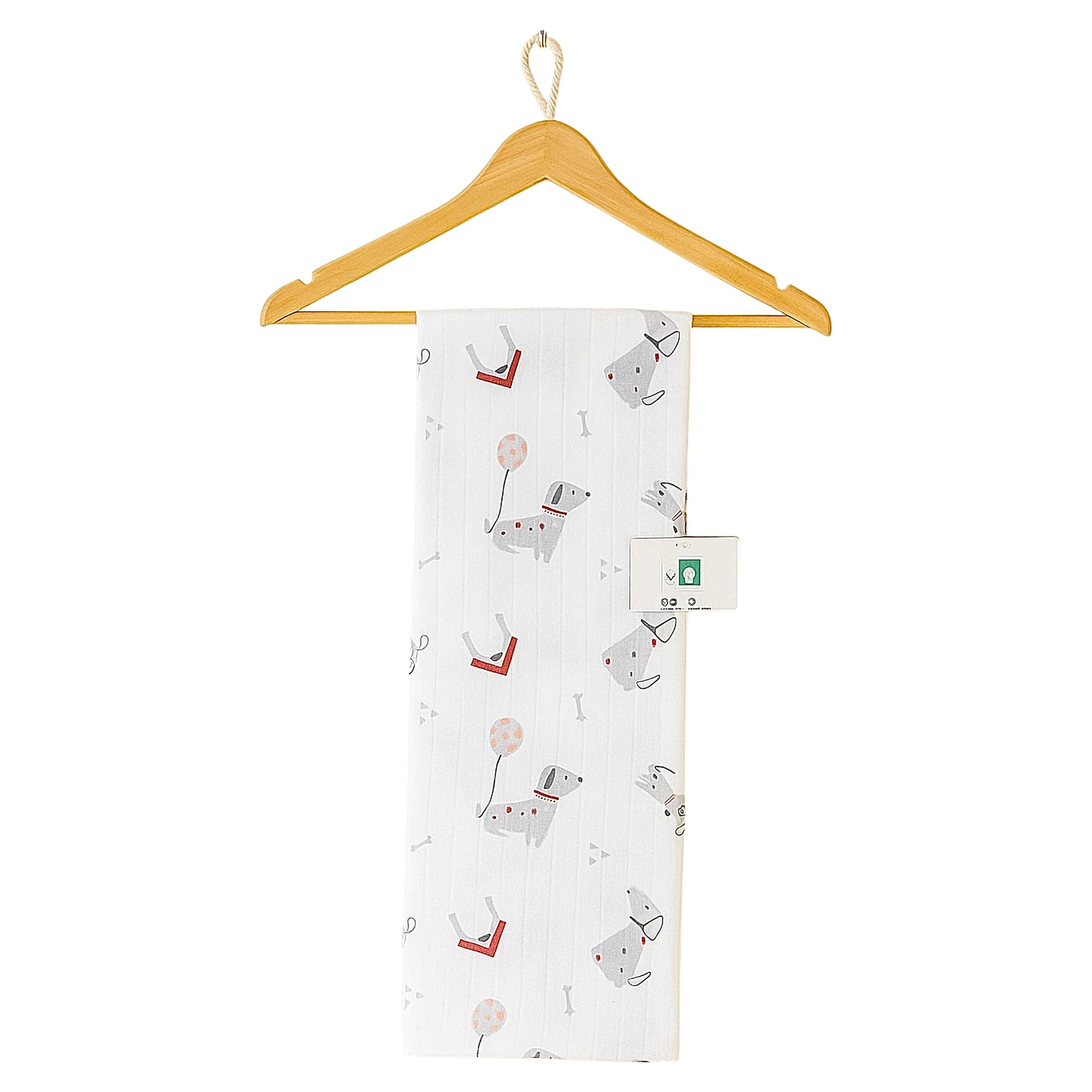 Craquez pour la tendresse de ce drap lange unisexe 75x75 cm, orné de petits chiots adorables.