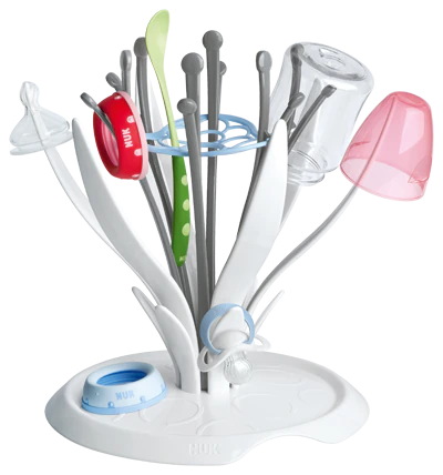 L’égouttoir à biberons Nuk vous permettra de faire sécher ou de ranger jusqu’à 6 biberons avec leurs accessoires tout en gardant votre plan de travail au sec.