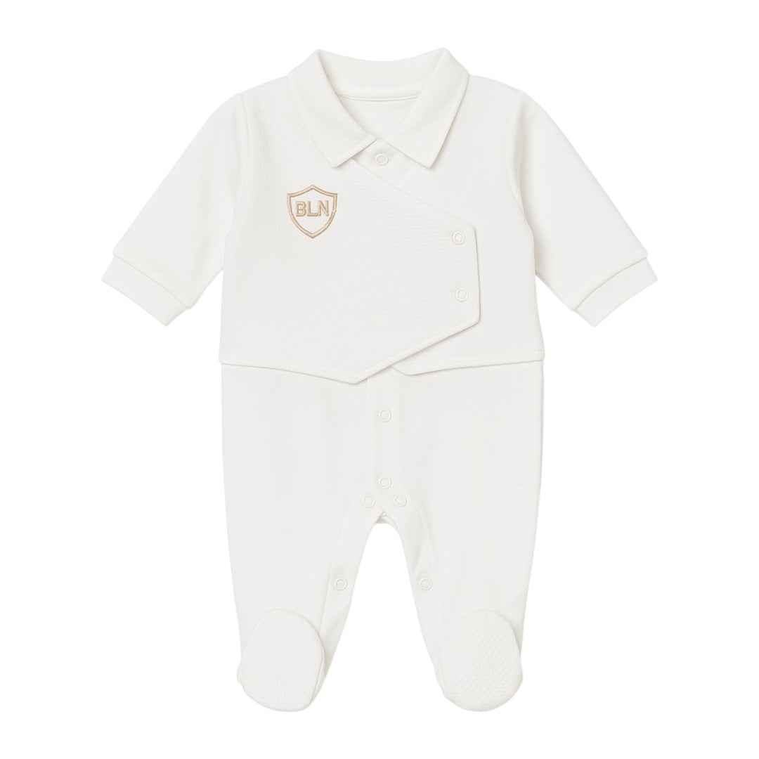 Apportez une touche de chic à la tenue de votre petit garçon avec cette grenouillère Classy BLN au style raffiné. Confectionnée en coton doux et respirant, elle allie confort absolu et élégance, idéale pour une occasion spéciale ou pour habiller bébé avec soin au quotidien.