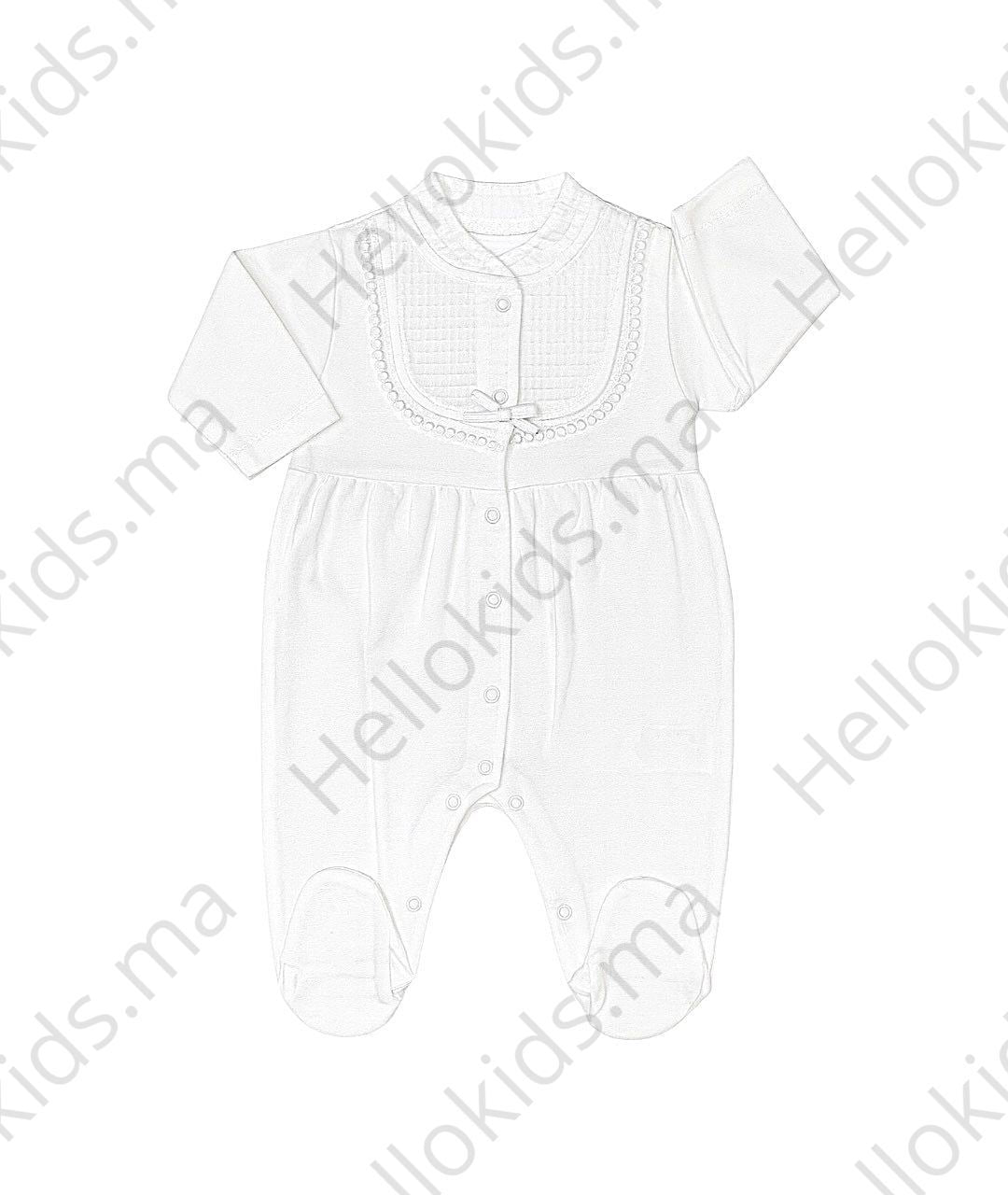 Avec son plastron finement travaillé et son nœud centré élégant, cette grenouillère se distingue par son style intemporel. Elle est parfaite pour les premiers jours à la maison, mais aussi pour accueillir les visites, prendre des photos souvenirs ou encore célébrer les premières occasions spéciales de bébé.