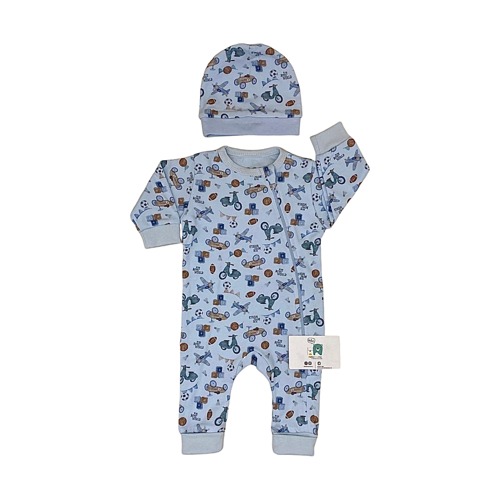 Découvrez la grenouillère "Boy Style Bleu", disponible exclusivement sur hellokids.ma. Idéale pour les moments de détente à la maison, cette grenouillère associe confort et design amusant pour votre petit garçon.