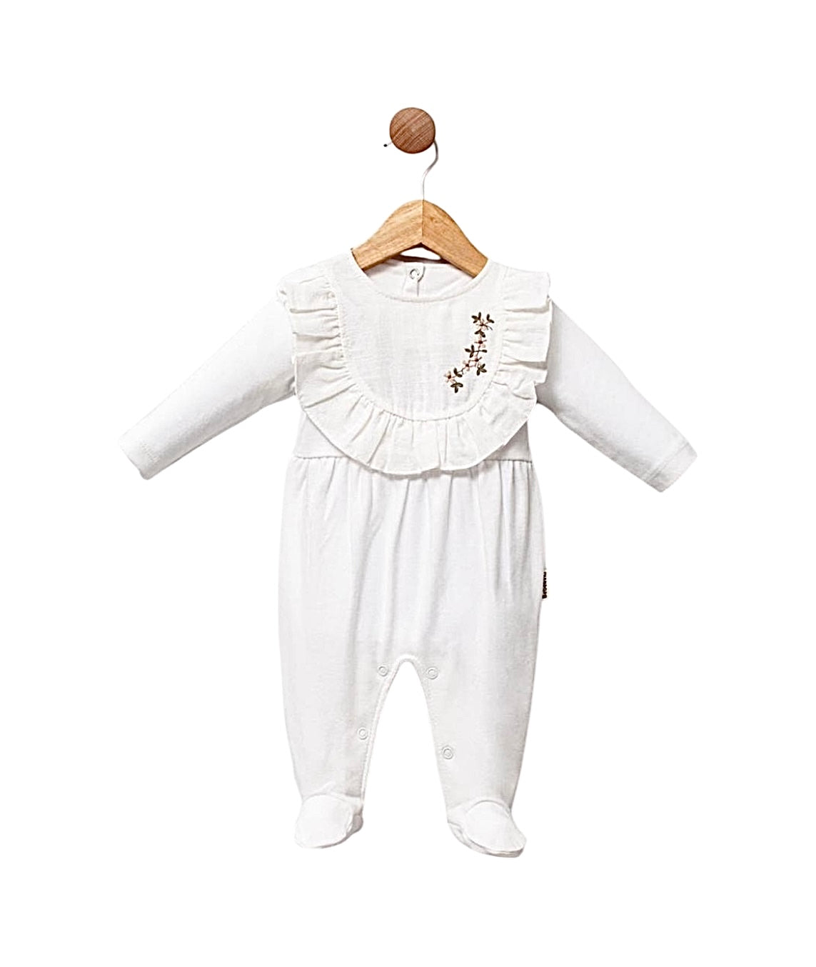 ffrez un look raffiné à votre princesse avec notre Classy Grenouillère Col à Froufrou et Fleurs en coton pour Baby Girl.