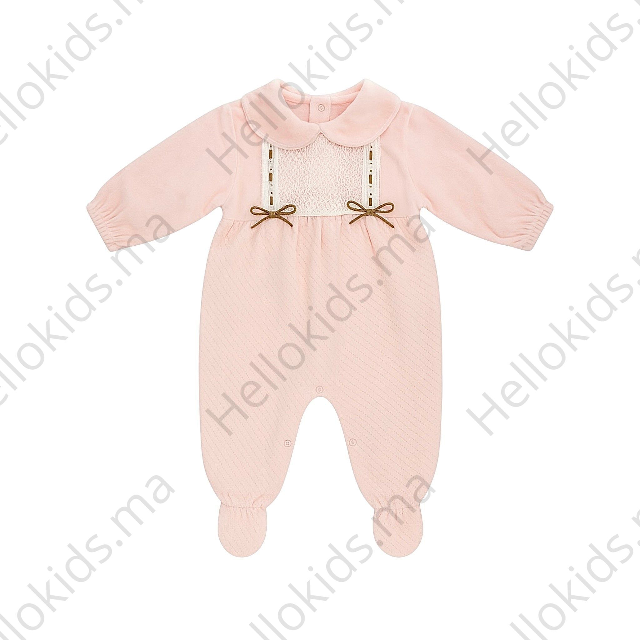 Retrouvez la Grenouillère Doubles Nœud Velours sur Hellokids.ma et complétez la garde-robe de bébé avec des pièces élégantes et douces, parfaites pour l’automne et l’hiver.