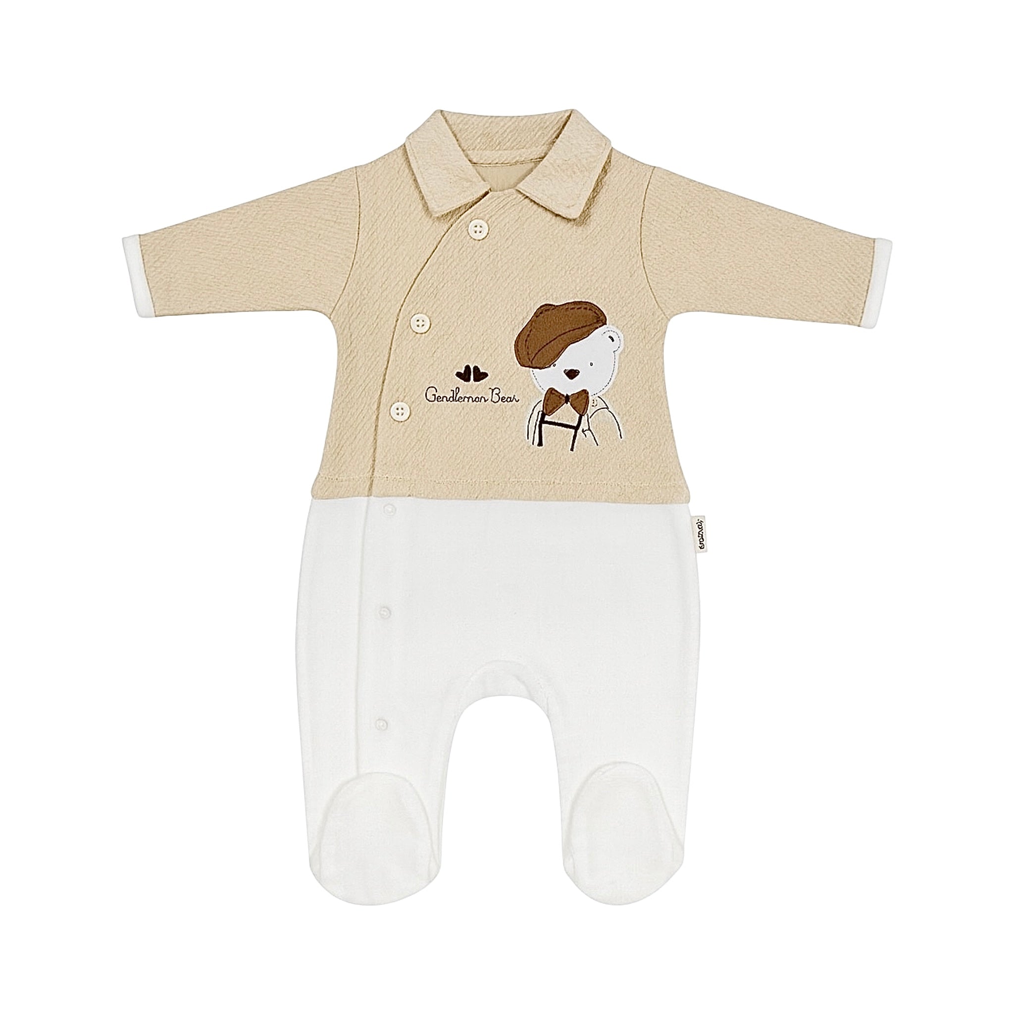 Offrez à votre petit prince un style raffiné dès ses premiers jours avec la grenouillère velours “Gentlemen”.