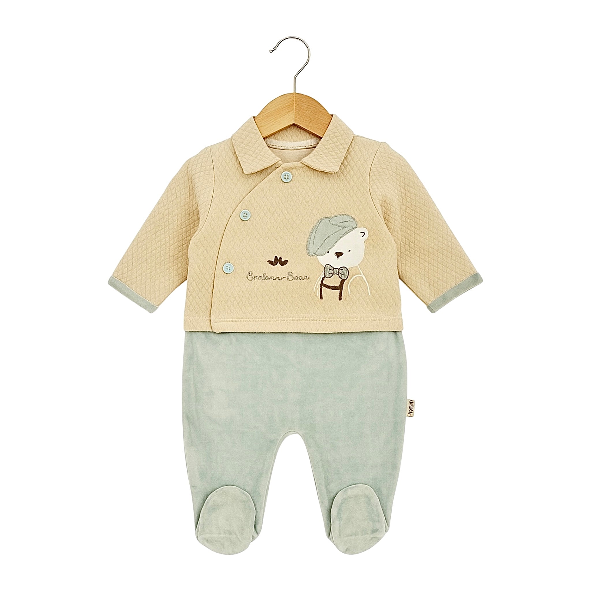 Retrouvez la Grenouillère Gentlemen Velours V2 en beige mint ou écru bleu eau sur Hellokids.ma, votre boutique marocaine spécialisée dans les vêtements et accessoires pour nouveau-nés : grenouillères, packs naissance, pyjamas, couvertures, capes de bain et bien plus encore.