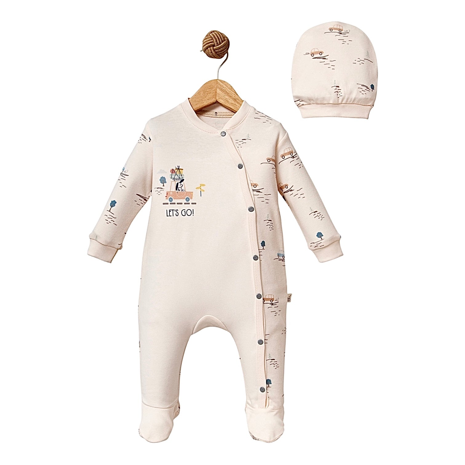 Offrez à votre petit aventurier un départ tout en douceur avec la Grenouillère Let’s GO On Vacation en coton biologique accompagnée de son bonnet assorti. Conçue pour envelopper bébé de confort dès la naissance, elle combine praticité, douceur et design ludique inspiré du voyage.