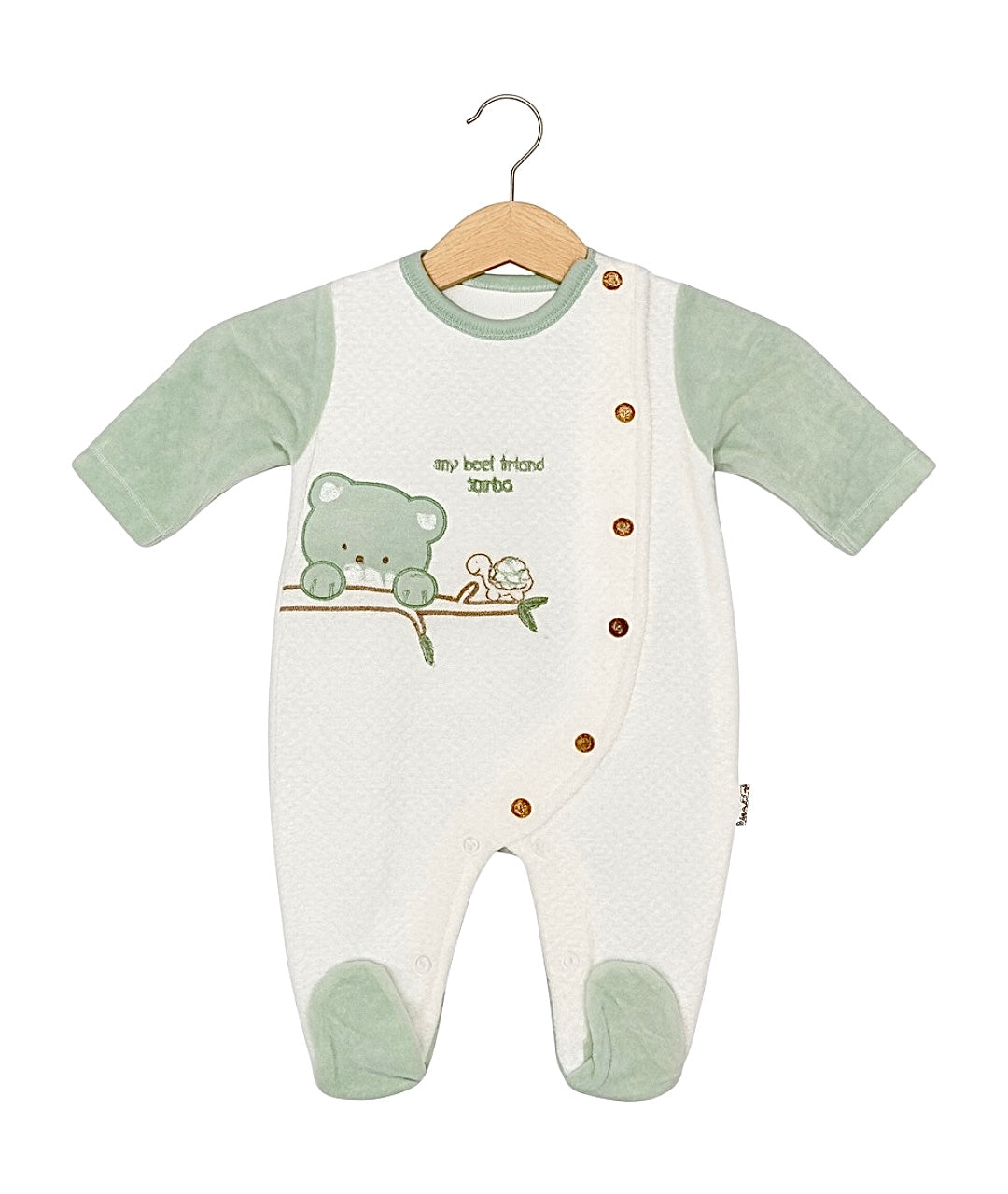 Retrouvez cette magnifique Grenouillère My Best Friend Tortue en velours au meilleur prix sur hellokids.ma, votre boutique en ligne spécialisée dans les essentiels pour bébé.