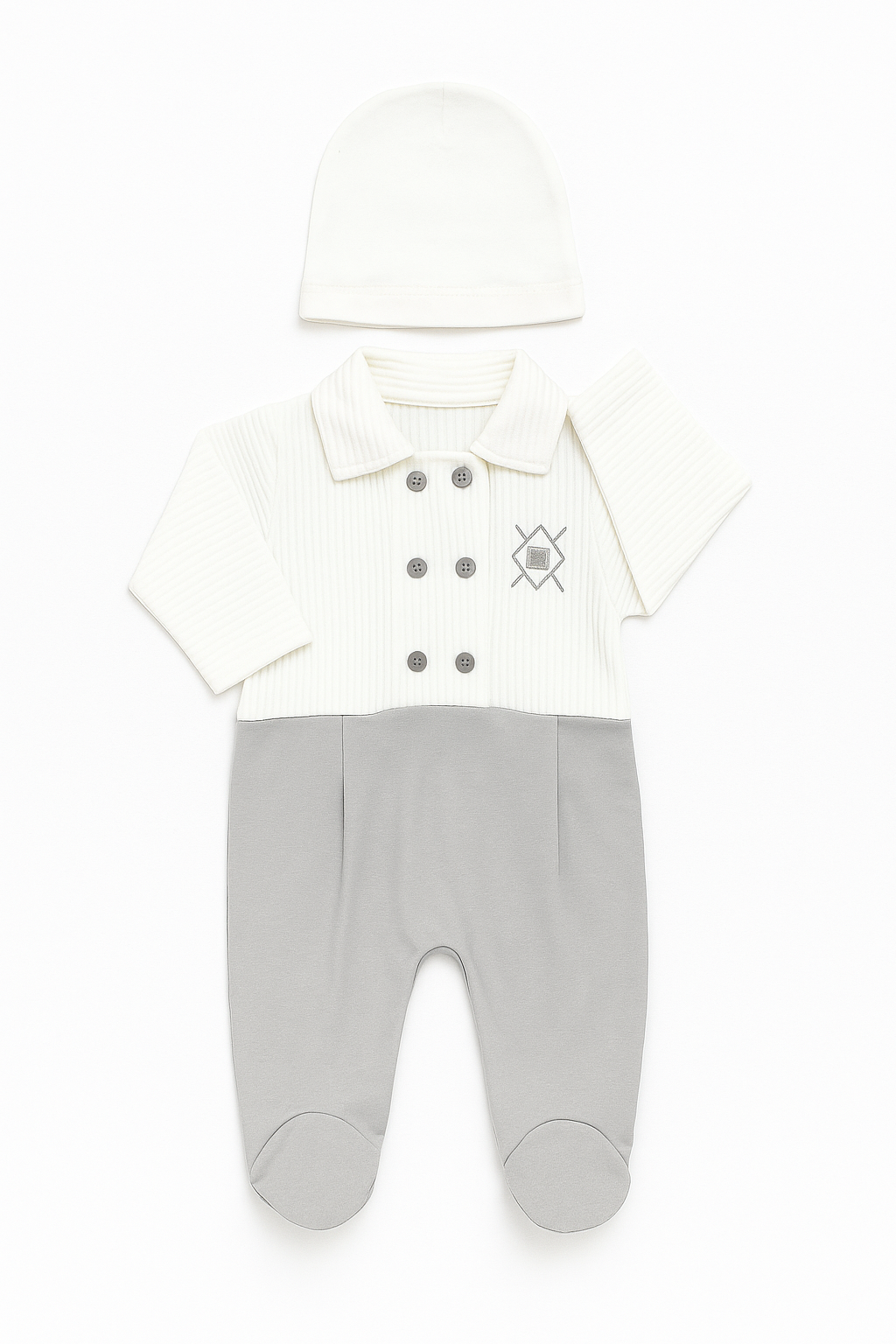 Disponible en deux combinaisons de couleurs sophistiquées, blanc et bleu ou blanc et mint, ce modèle uni et chic est parfait pour habiller bébé avec style en toute occasion.