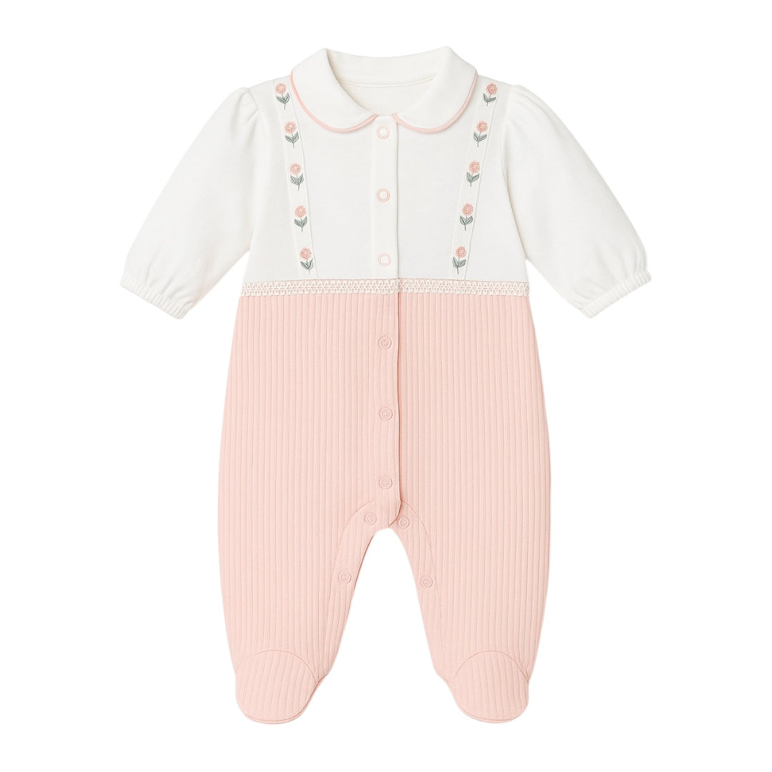 Ornée de jolis motifs floraux et traits fins, cette grenouillère séduit par sa touche poétique et raffinée. Sa coupe élégante en une seule pièce en fait une tenue à la fois pratique et pleine de charme, parfaite pour les premiers moments de vie.