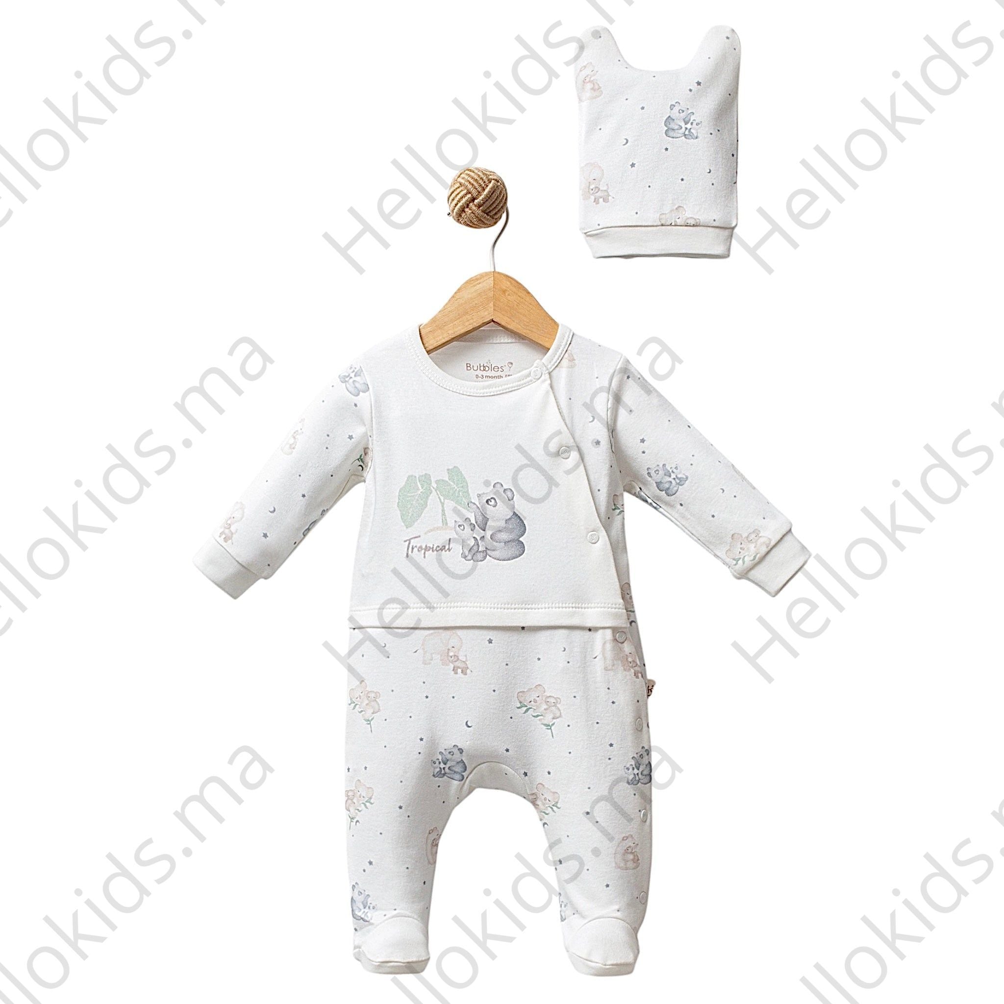 Offrez à votre bébé confort, douceur et style avec la grenouillère Tropical en coton bio, pensée spécialement pour les tout-petits. Ce joli ensemble inclut une grenouillère à manches longues et un bonnet assorti, idéal pour garder bébé bien au chaud dès ses premiers mois.
