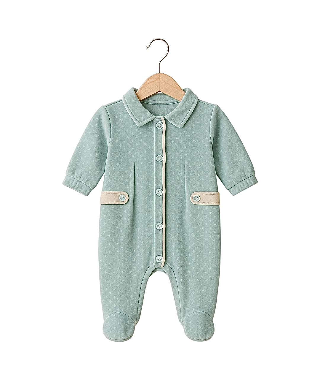 Offrez à votre nouveau-né un confort absolu avec cette grenouillère unie en velours, spécialement pensée pour les premiers mois. Son ouverture centrée et son design élégant en font une tenue pratique, douce et parfaitement adaptée au quotidien de bébé.