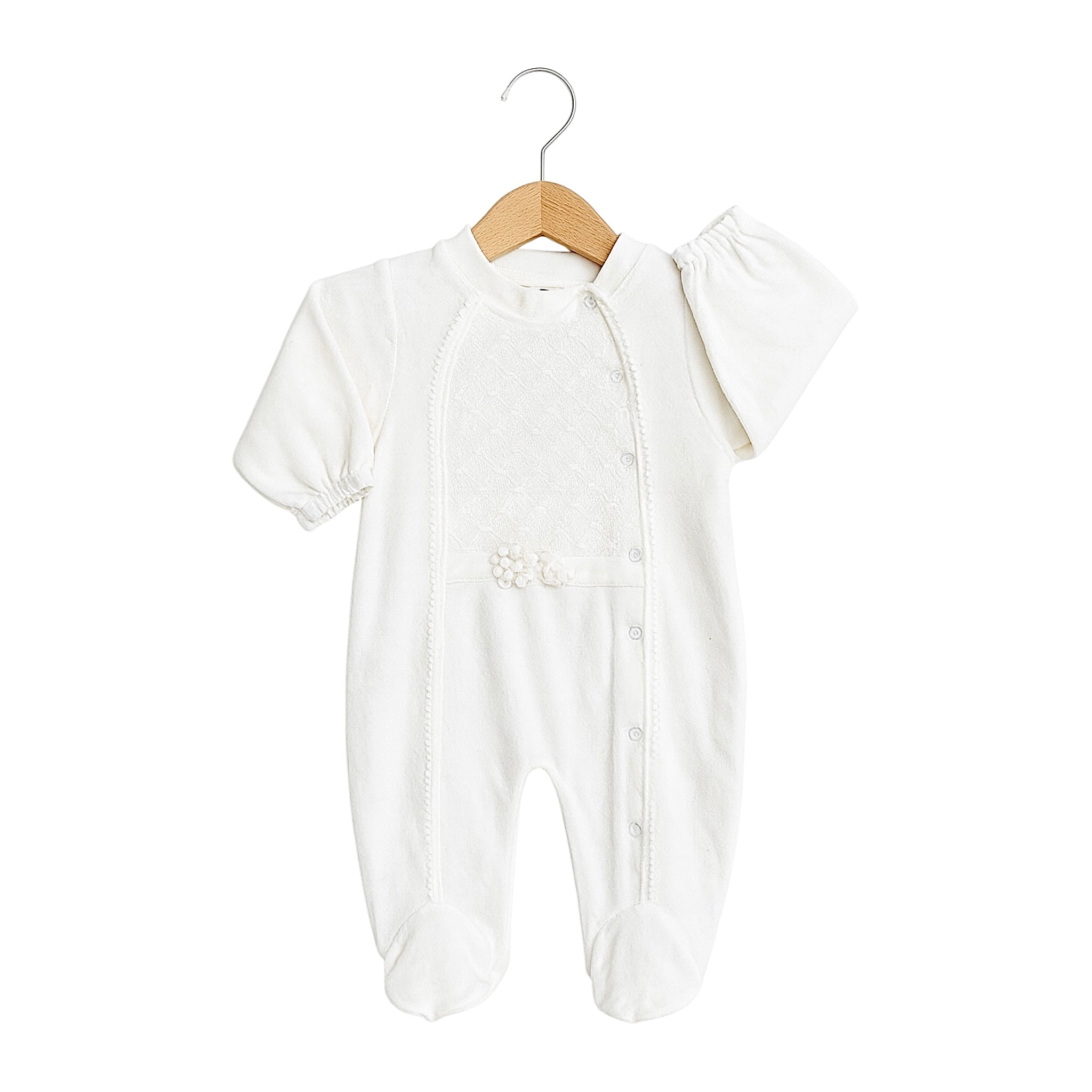 Retrouvez la Grenouillère White Baby Girl Classy Velours sur Hellokids.ma, votre boutique de référence pour les vêtements et accessoires de naissance : packs naissance, pyjamas, capes de bain, couvertures et grenouillères premium pour bébé.