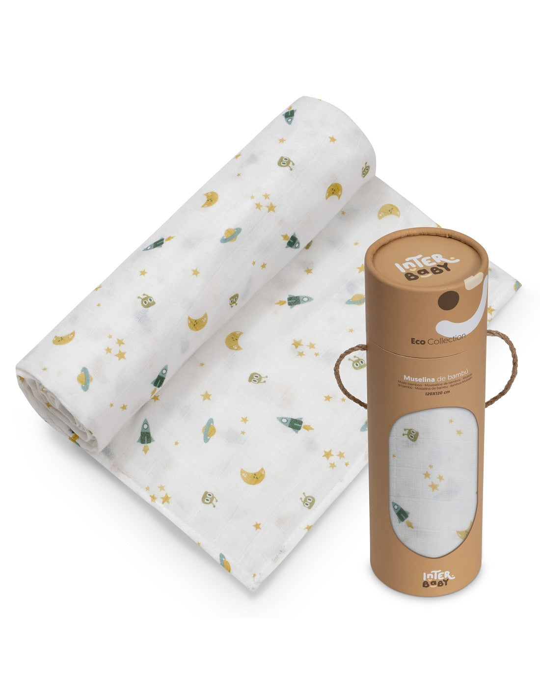 Apportez douceur, légèreté et imagination au quotidien de bébé avec le drap lange en mousseline 120x120 cm Modèle Espacio de Interbaby. Inspiré de l’univers spatial, ce lange associe confort, qualité et design ludique, idéal dès la naissance.