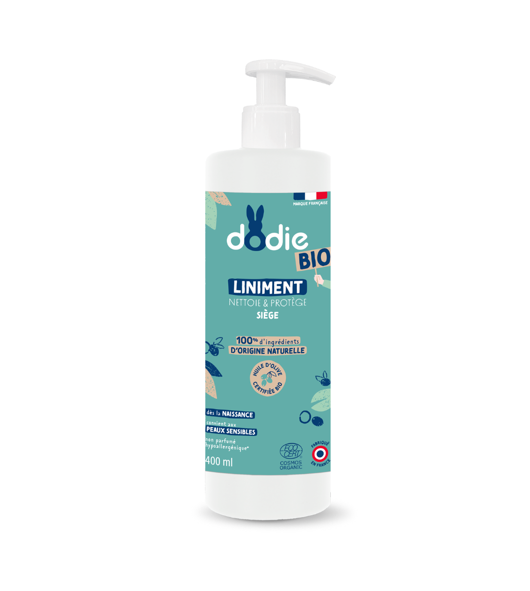 Petit nouveau dans la famille Dodie on vous présente notre nouveau liniment pour protéger et nettoyer efficacement le siège des bébés, Dodie fait confiance à l’huile d'olive certifiée BIO* qui forme un film protecteur : peau protégéepour les bébés. Fabriqué en France avec 100% d'ingrédients d'origine naturelle, le Liniment certifié BIO Dodie est Hypoallergénique** et non parfumé. - Note yuka : Excellent -100% d'ingrédients d'origine naturelle -Certifié bio - A base d'olive BIO - Fabriqué en France - Hypoallergénique** et non parfumé