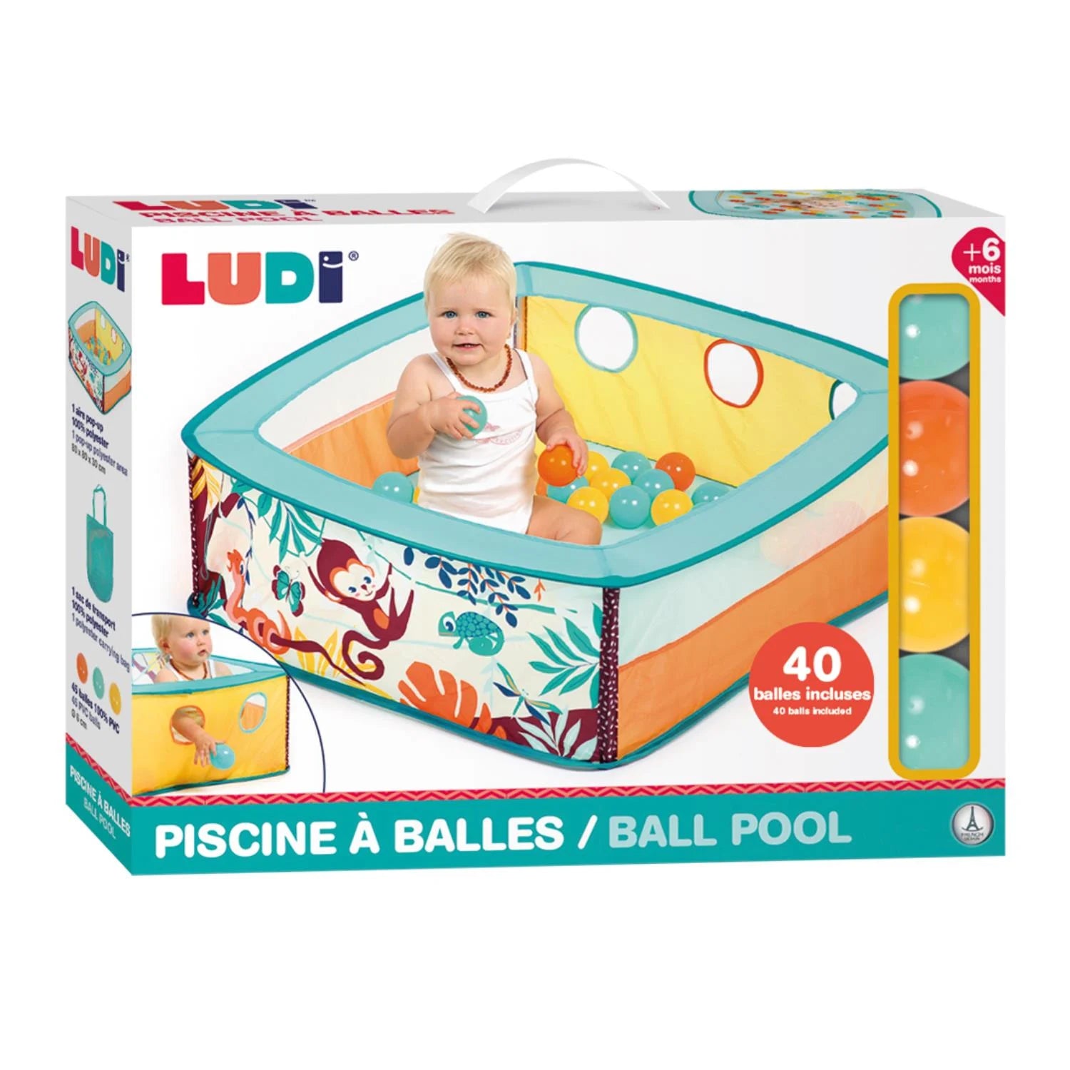 Retrouvez la Ludi - Piscine à Balles Jungle avec 40 Balles 6m+ sur Hellokids.ma — votre boutique marocaine de confiance spécialisée dans les articles de puériculture, jeux d’éveil et accessoires pour bébé.