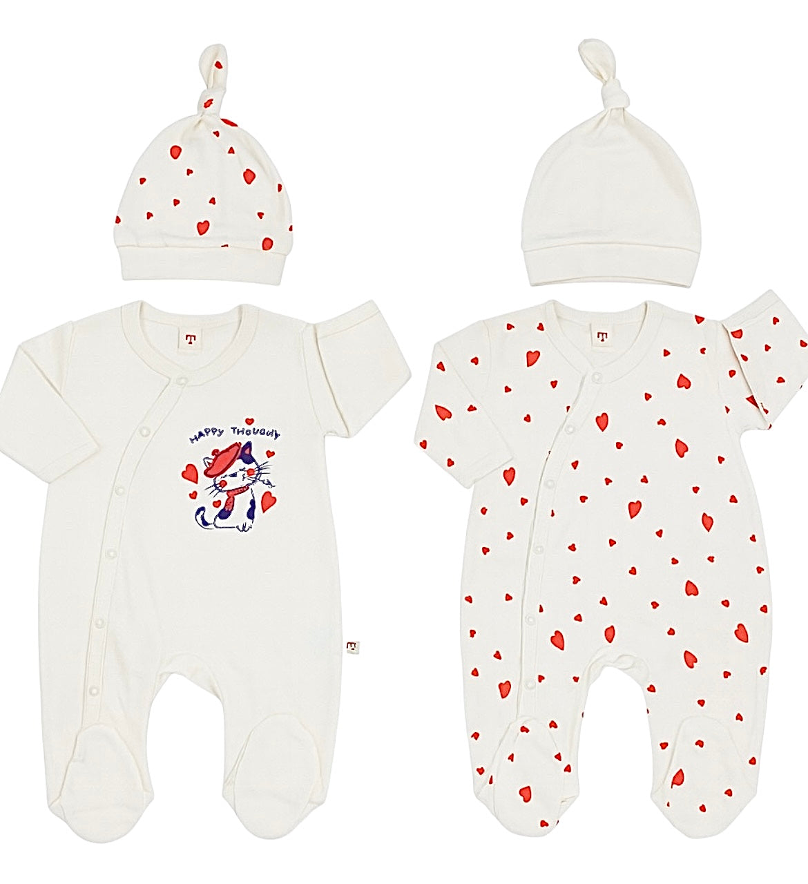 👉 Retrouvez dès maintenant ce Pack de 2 Grenouillères Happy Thought avec bonnets sur Hellokids.ma et complétez la valise de maternité avec style et praticité.