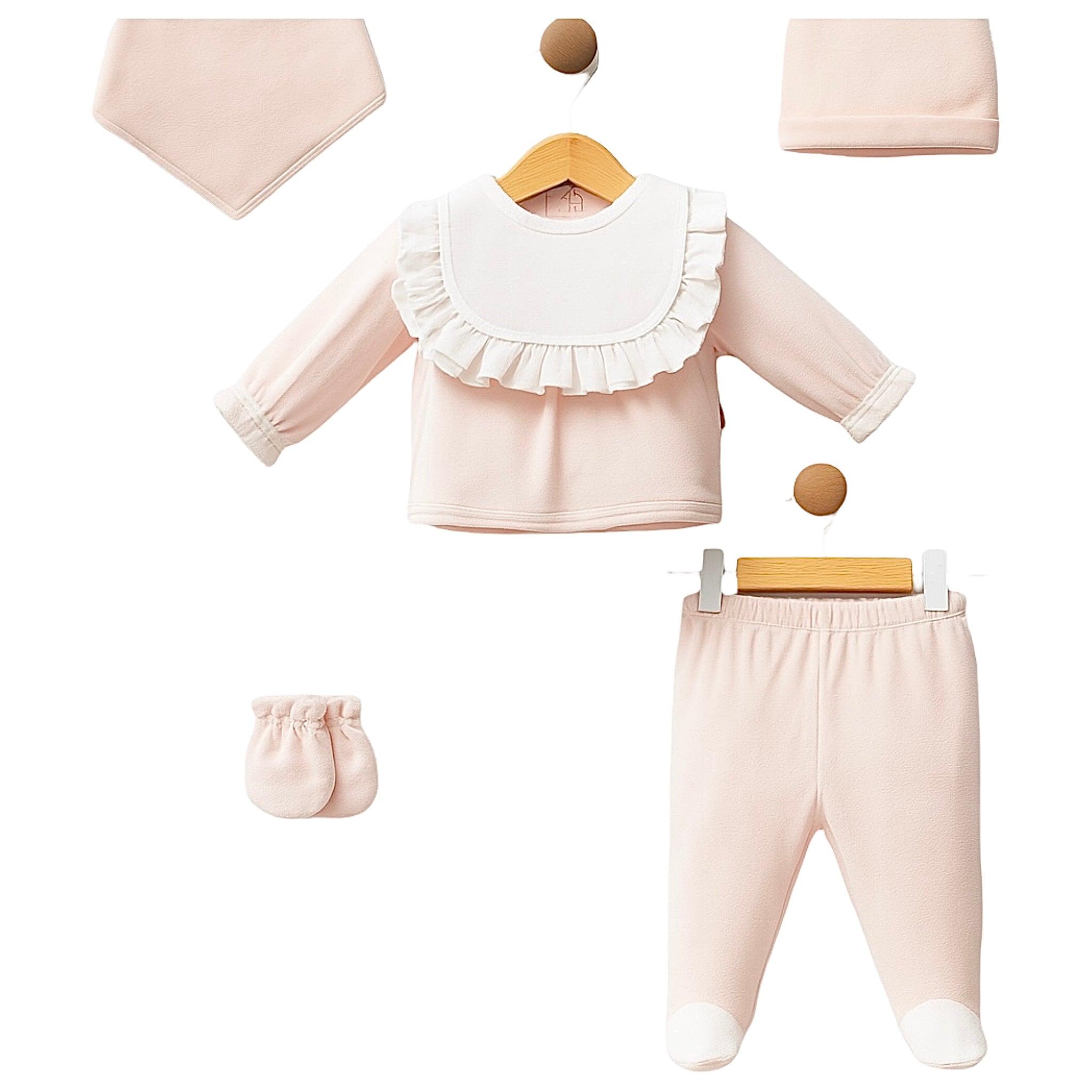 Retrouvez ce joli pack naissance à col froufrou sur Hellokids.ma et craquez pour une tenue aussi douce que charmante !