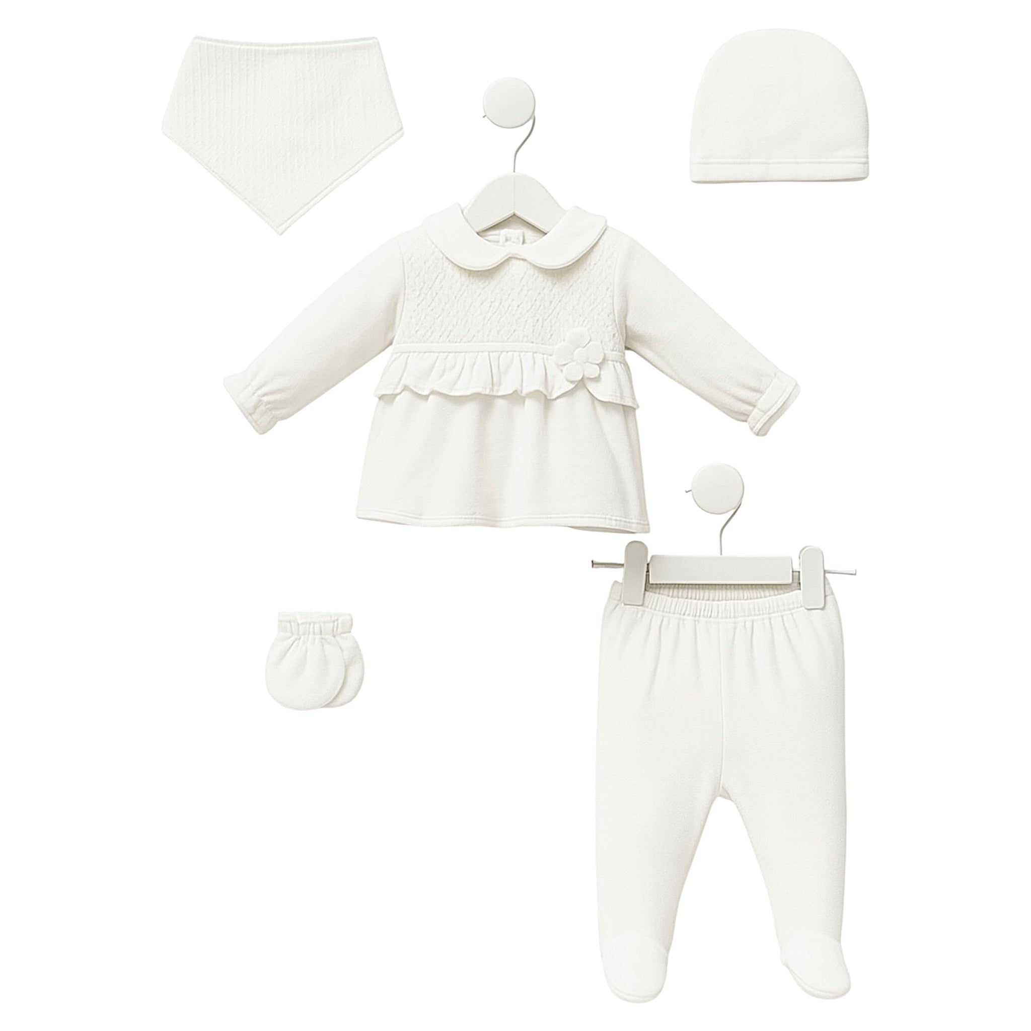Plongez dans un univers de douceur et d’élégance avec notre sublime pack naissance velours Lovely Flower, une tenue raffinée entièrement blanche, pensée pour sublimer les premiers instants de votre princesse.