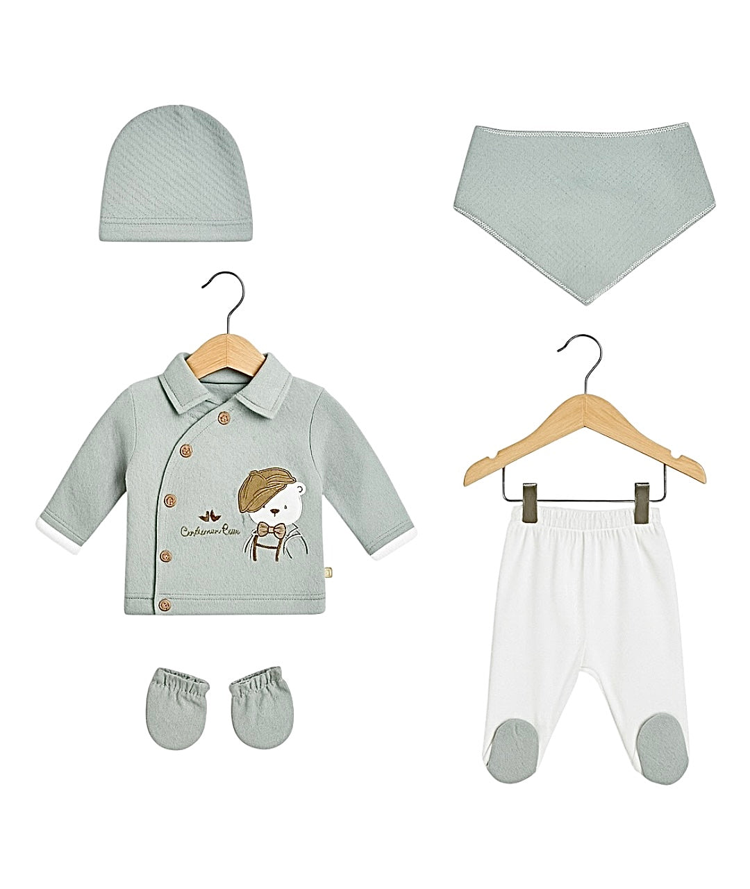 Le Pack Naissance Gentlemen est l’ensemble parfait pour accueillir votre petit prince. Avec son style chic, sa couleur mint douce associée au blanc, et son motif ourson gentleman, ce pack apporte une touche raffinée aux premiers jours de bébé.