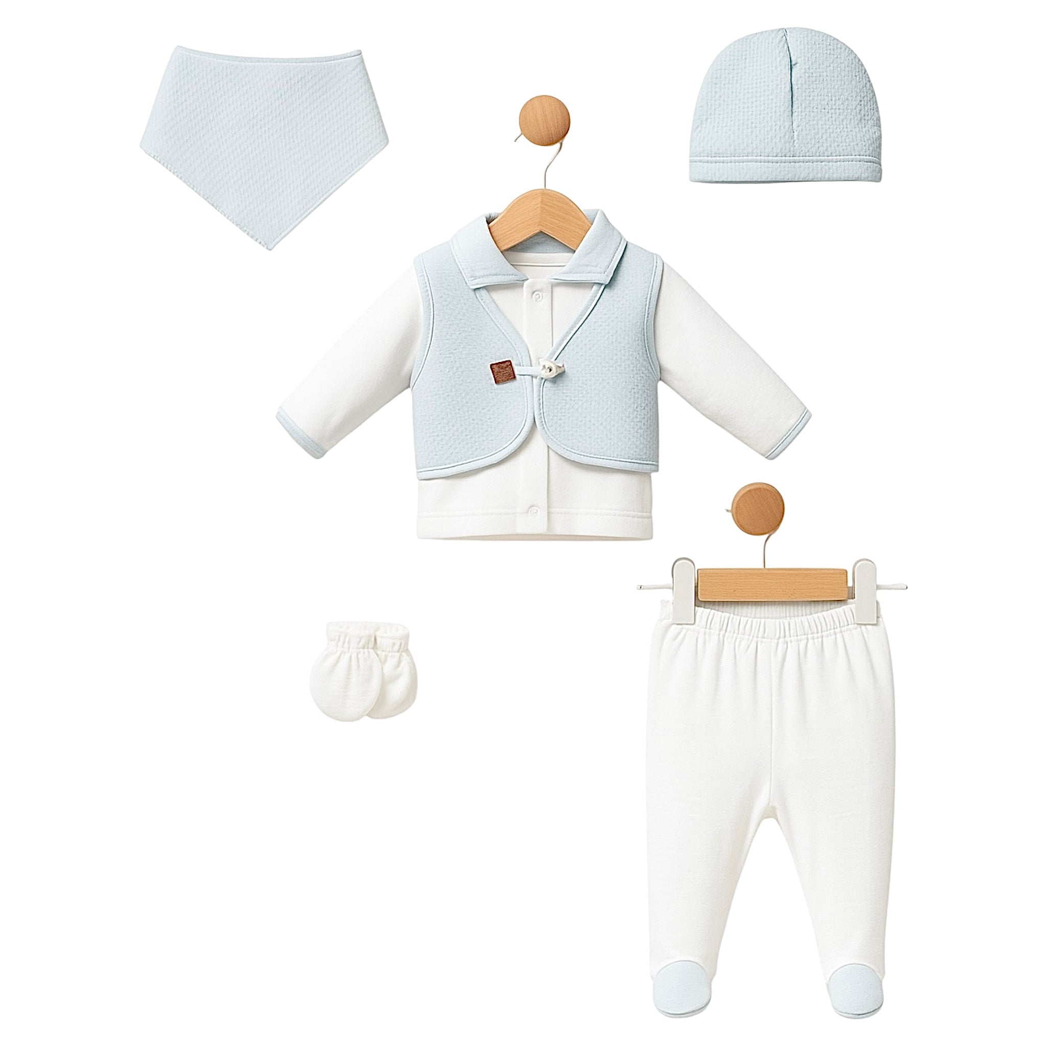 Offrez douceur et élégance à votre petit prince avec ce magnifique coffret naissance 5 pièces en velours, spécialement conçu pour les premiers jours de bébé.