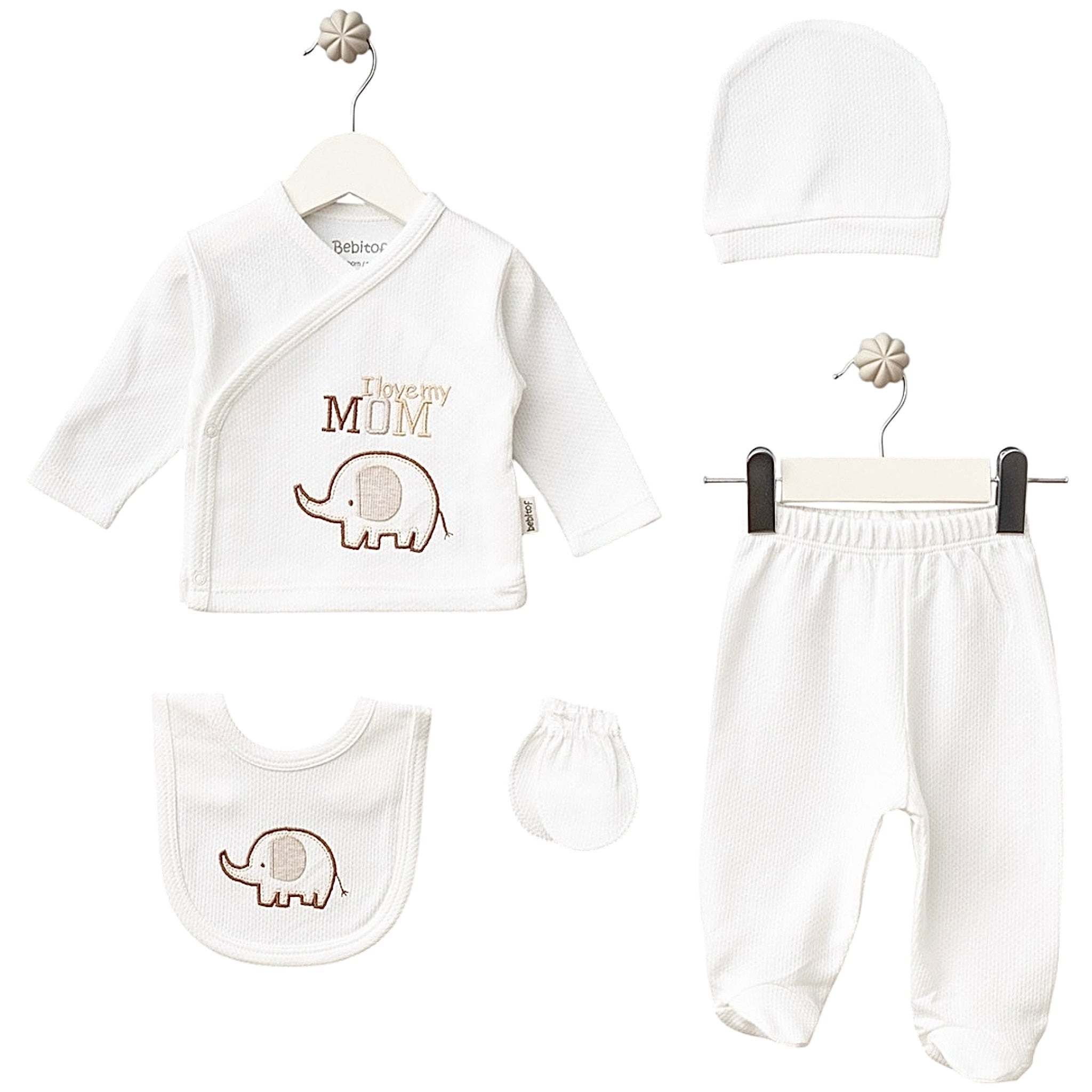 👼 Craquez pour ce Pack naissance "I love Mum" 5 pcs en coton unisexe, et découvrez encore plus de modèles tendres et pratiques sur hellokids.ma, votre référence en packs naissance pensés avec amour.