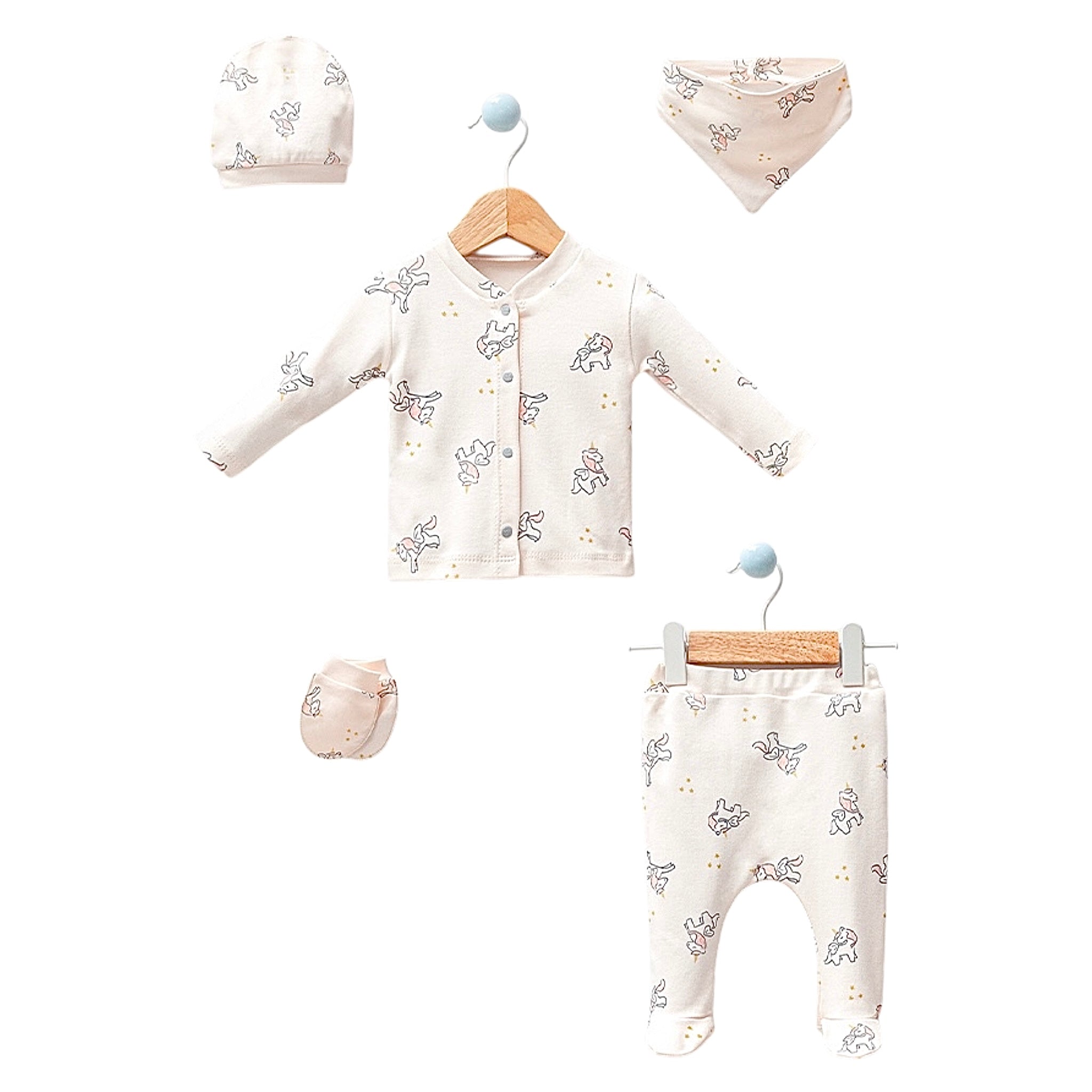 Le doux et choupi Pack naissance Licornes 5 pcs coton bio pour baby girl est l'ensemble parfait pour accueillir votre petite princesse.