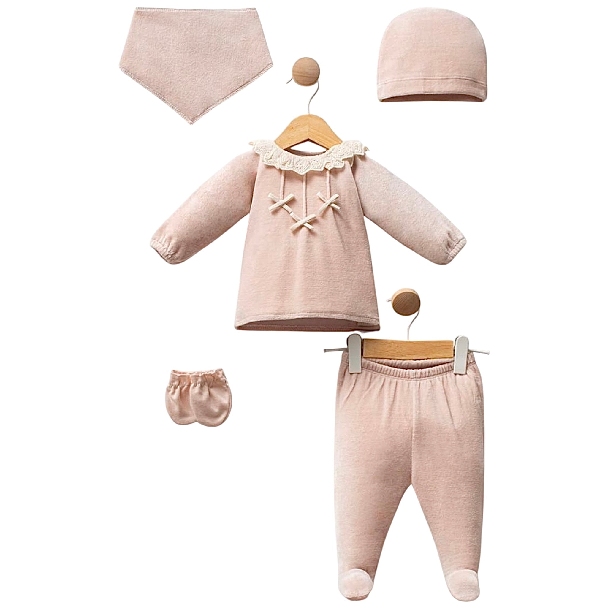 Pack Naissance Trio noeuds Velours 5 Pièces – Douceur et Élégance pour Bébé Fille