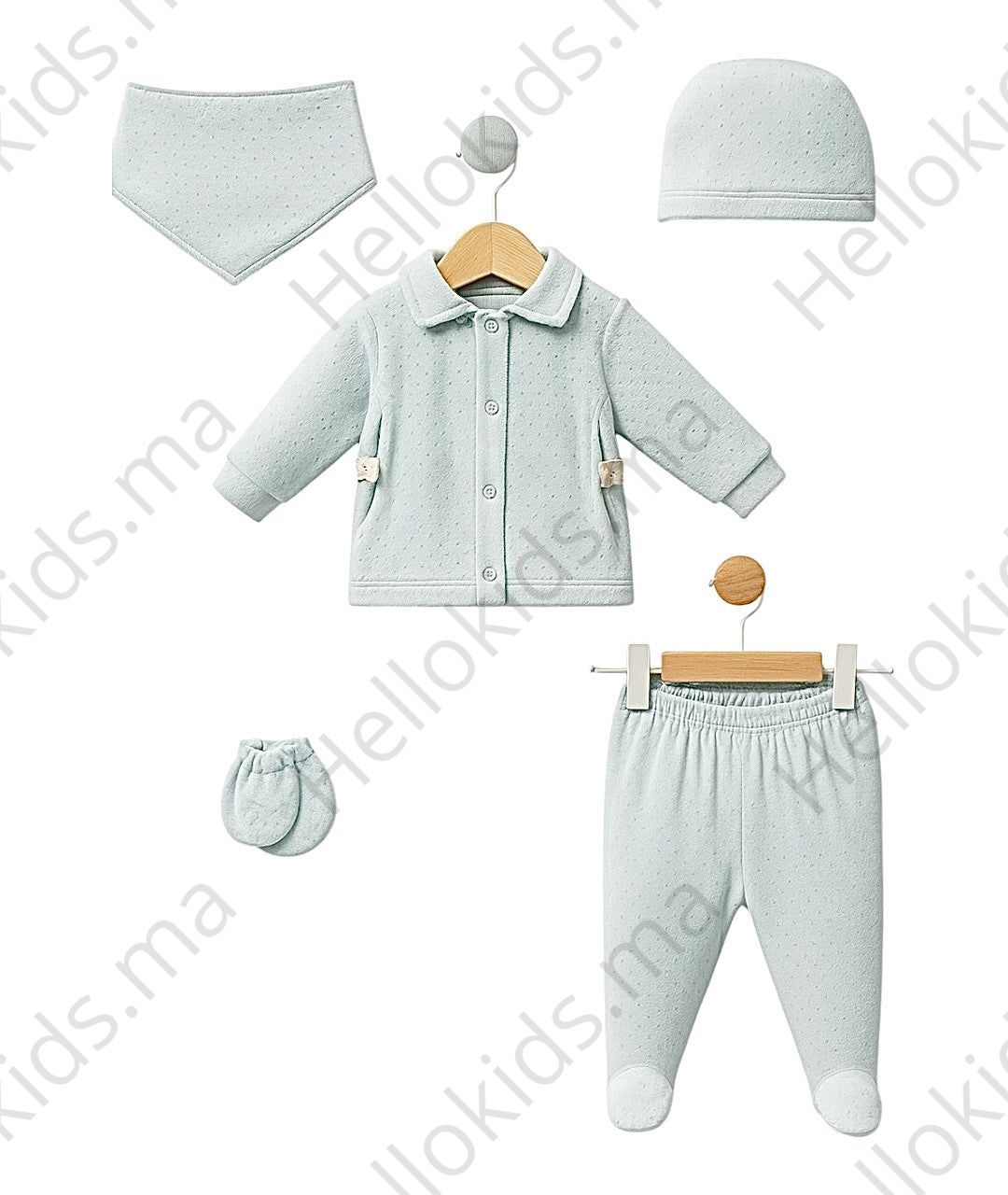 ✨ Craquez pour ce Pack Naissance Unie Ouverture Centrée Baby Boy 5 pcs en Velours, et offrez à bébé douceur, confort et style dès ses premiers jours.