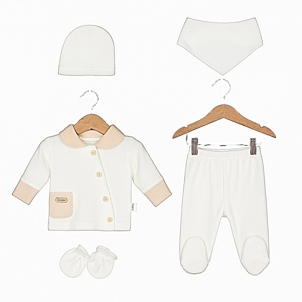 Ce pack naissance 5 pièces regroupe les essentiels indispensables du quotidien :
