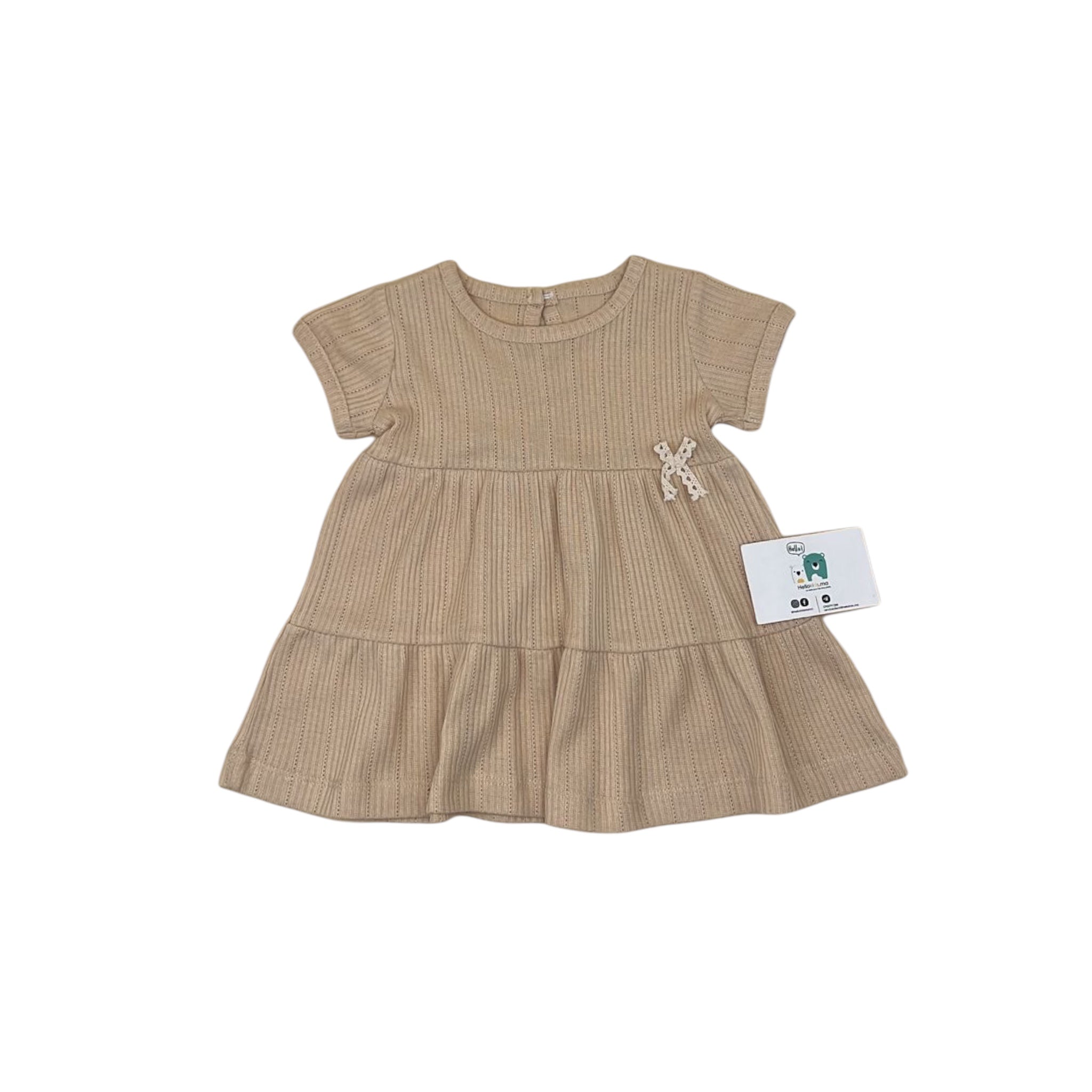 Fraiche, Douce et simple à la fois :) Cette robe toute croupi ravira votre baby girl pour l'été. Cette ensemble est disponible en beige et est disponible sous les tailles suivantes :