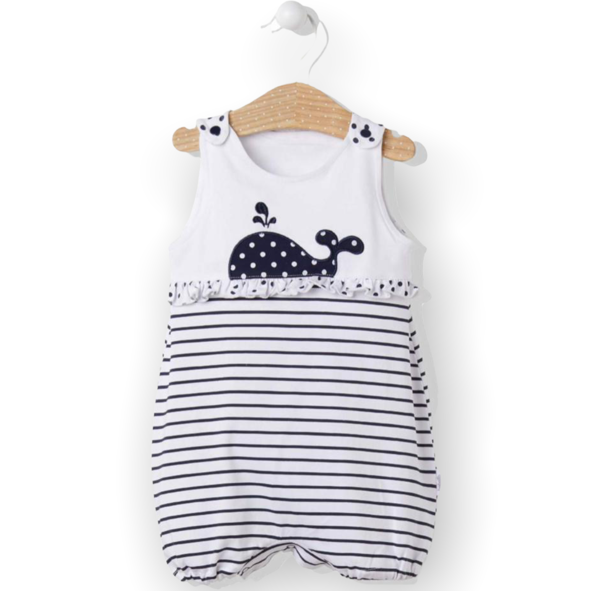 Belle, sobre et classe. 3 termes qui décrivent parfaitement cette tenue baleine 1 pcs :) Cette tenue est parfaite pour l'été. Votre bébé sera ravie d'avoir un style particulier. Cette tenue est disponible en bleu marine & blanc à motifs et est unisexe et et est disponible sous les tailles suivantes :