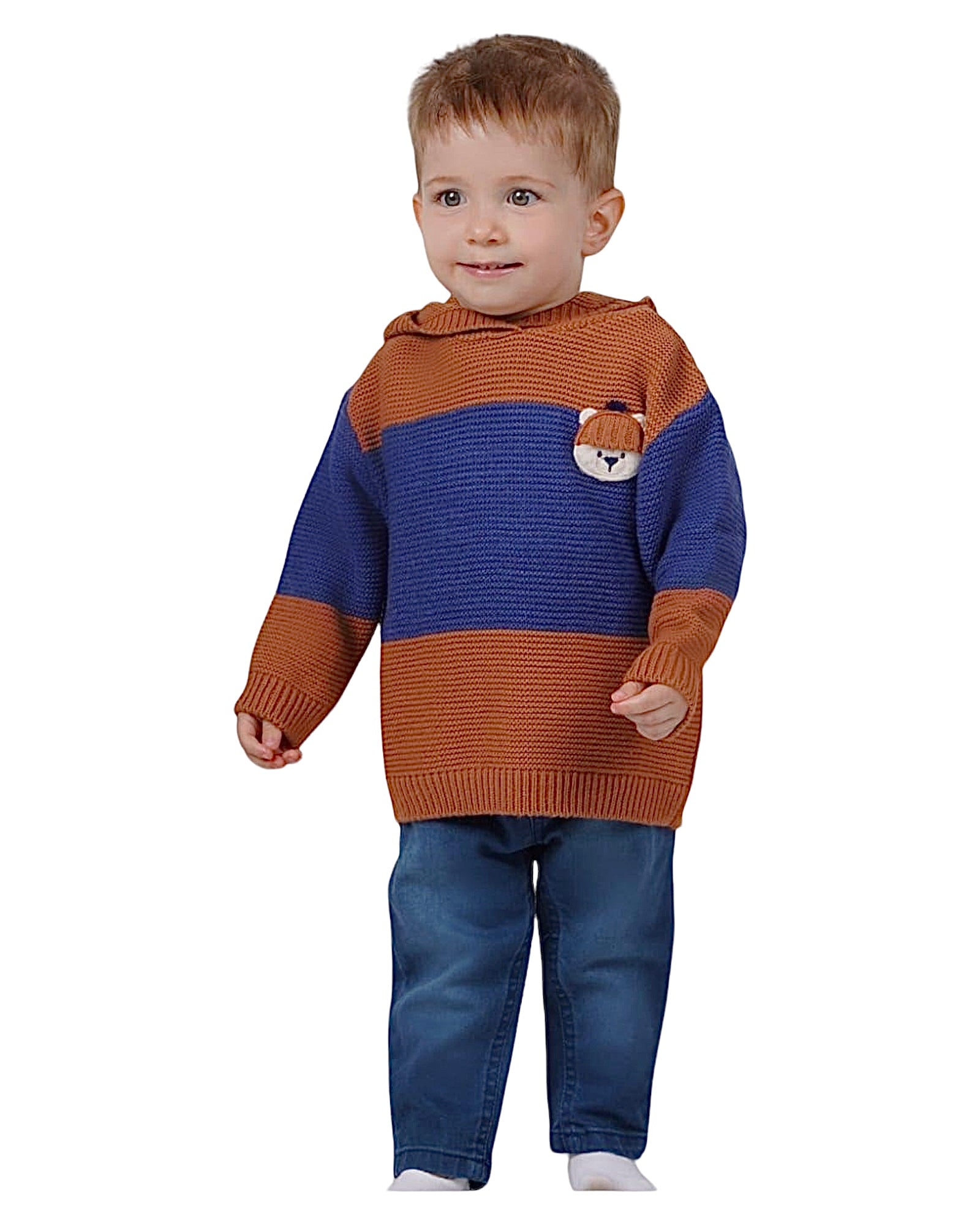 Le pull à capuche marron et bleu est un véritable coup de cœur pour l’hiver. Avec son motif nounours choupi, il apporte une touche ludique et chaleureuse qui fera craquer tout le monde. La capuche est non seulement pratique pour protéger la tête de votre bébé du froid, mais elle ajoute également une note de style. Conçu dans un tissu doux et confortable, ce pull garantit que votre bébé reste bien au chaud tout en étant à l'aise.